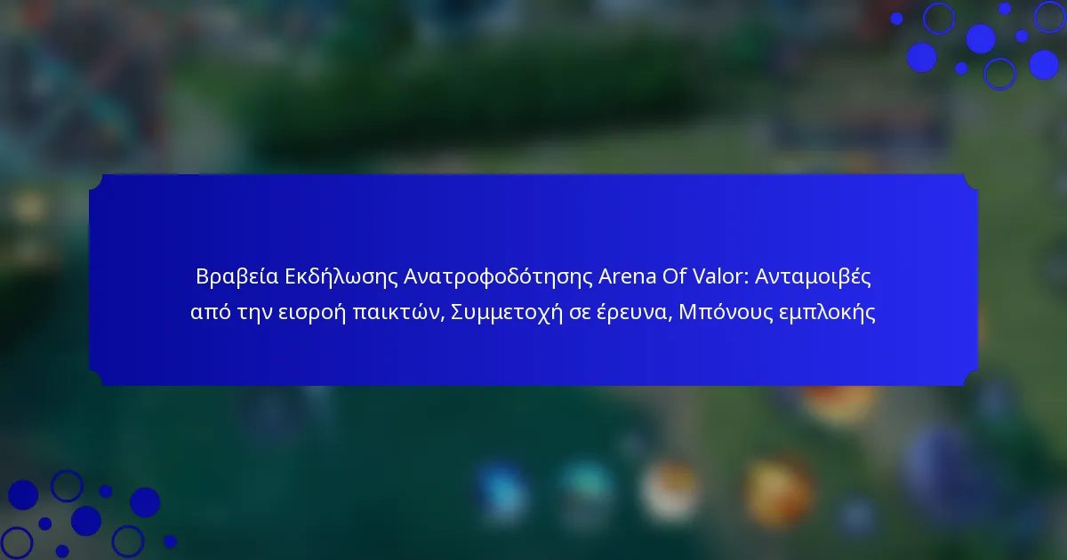 Η εκδήλωση ανατροφοδότησης του Arena of Valor είναι μια πρωτοβουλία που έχει σχεδιαστεί για να συγκεντρώσει τις απόψεις και τις προτάσεις των παικτών προκειμένου να ενισχύσει την εμπειρία παιχνιδιού. Συμμετέχοντας, οι παίκτες μπορούν να συμβάλουν με πολύτιμη ανατροφοδότηση και να κερδίσουν βραβεία για την εμπλοκή τους.